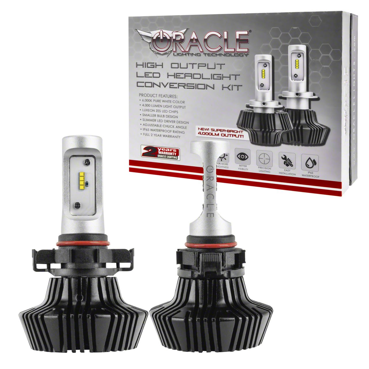 LED Headlight Bulbs. Improve your on-road safety and visibility with this Oracle LED Headlight Bulbs; PSX24W/2504. Designed for utility and safety, it features a minimum brightness of 4,000 lumens and 6,000 lumens maximum in a 6000K color temperature.