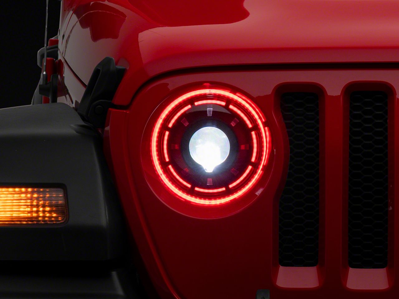 Stunning LED Projector Headlights. Upgrade your Jeep with these Oracle Oculus Bi-LED Projector Headlights with Black Housing, Clear Lens, and ColorSHIFT to add a unique and stunning feature to your off-roader. These headlights come with outer and inner halo rings that can be shifted between red, blue, green, and white for a stunning effect. Also, their white LEDs produce powerful brilliance without glare for enhanced visibility and safety. With these headlights, your Jeep becomes an impressive centerpiece in off-road shows.