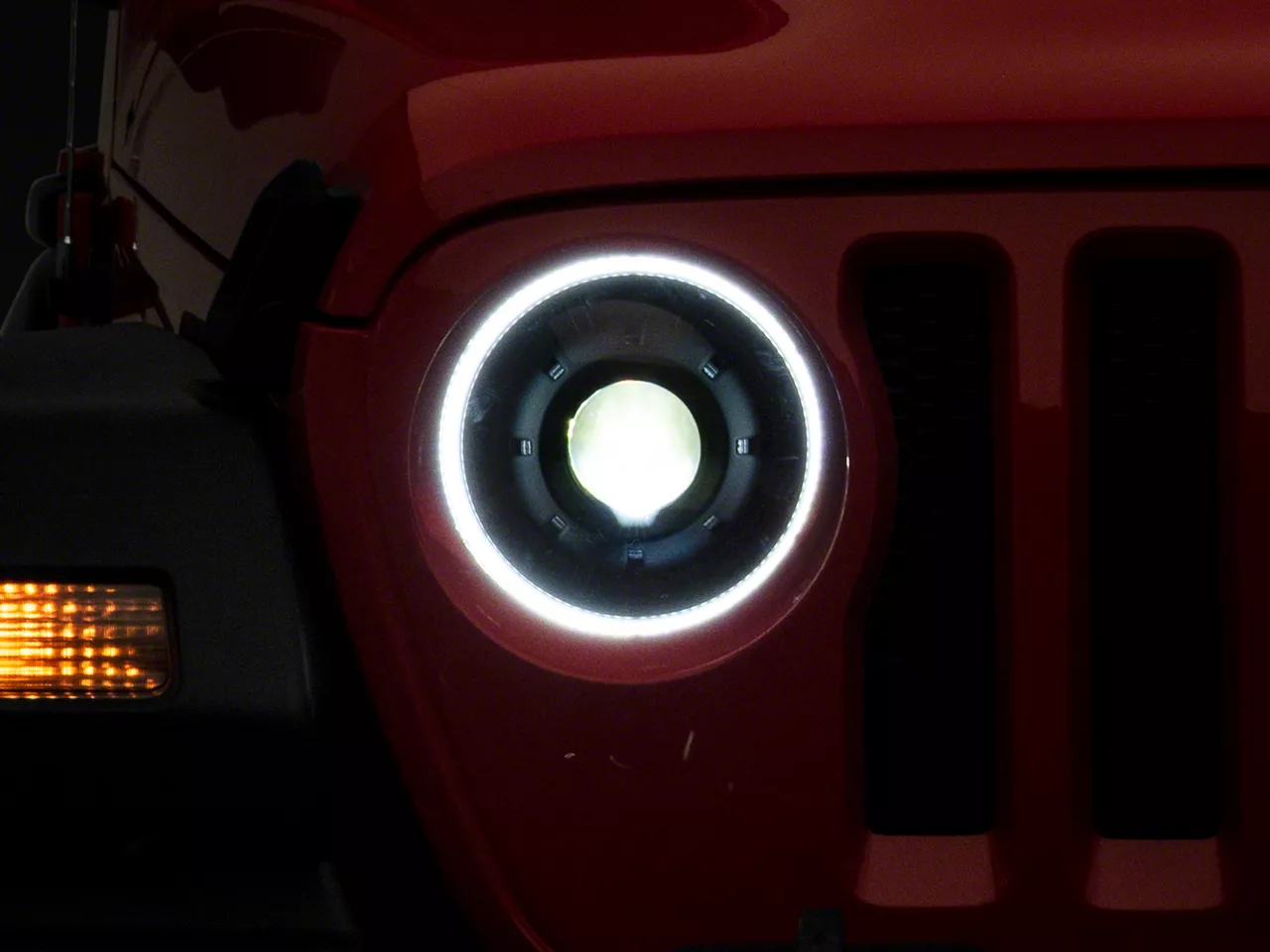 Modern Styling. A pair of Oracle Oculus Bi-LED Projector Headlights with White Halos and matte black bezels are an excellent way to add an updated modern appearance to your Wrangler, all while improving your nighttime visibility. With impressive white LED halos, these Headlights will give your Jeep a whole new look.