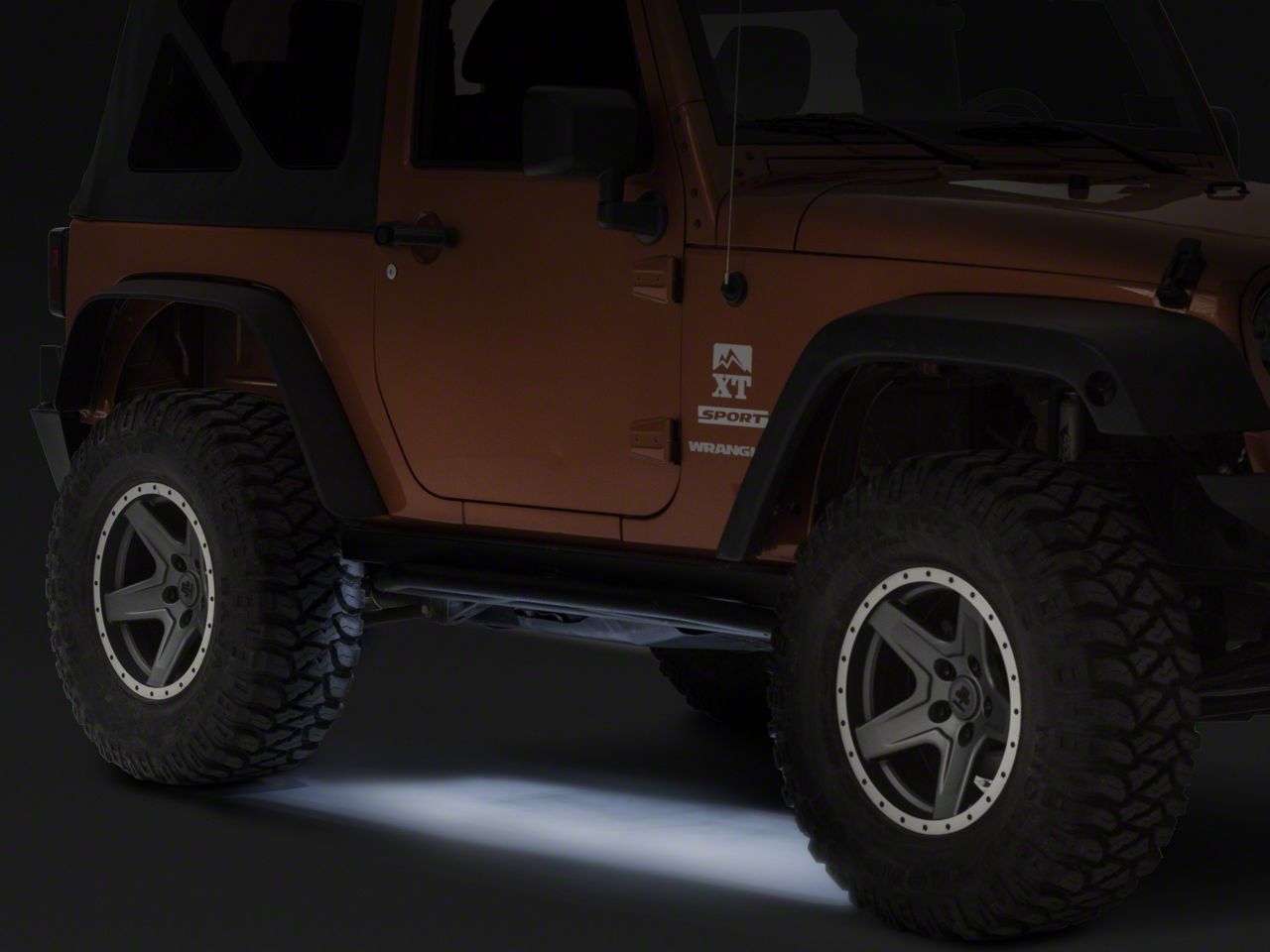Superior Night Lighting. Whether you're making night trail runs or need additional lighting under the hood or chassis, Off Road Only's LiteSPOT Chassis Rock Lights Kit is the ideal answer. This kit includes everything you'll need to create a custom lit Wrangler without emptying your wallet. You'll be able to easily create spot lights for crawling or repairs, additional illumination under the hood or in the cab or any combination to perfectly suit your lifestyle. Best of all these lights are low power, drawing only 175 milliamps at 12 volts and don't require an additional battery to install.