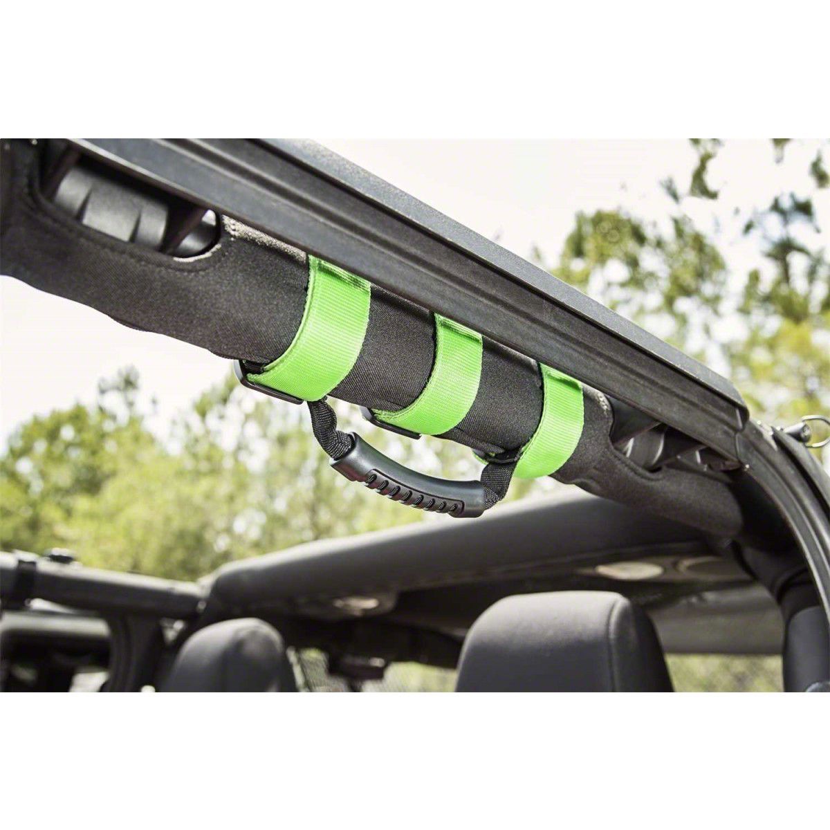 Tough Construction. Built to last, these Outland Ultimate Grab Handles are constructed of tough nylon webbing. This type of construction makes the grab handles extremely durable and won’t easily wear and tear. Furthermore, the handles come in a green finish which helps enhance your Jeep’s interior.