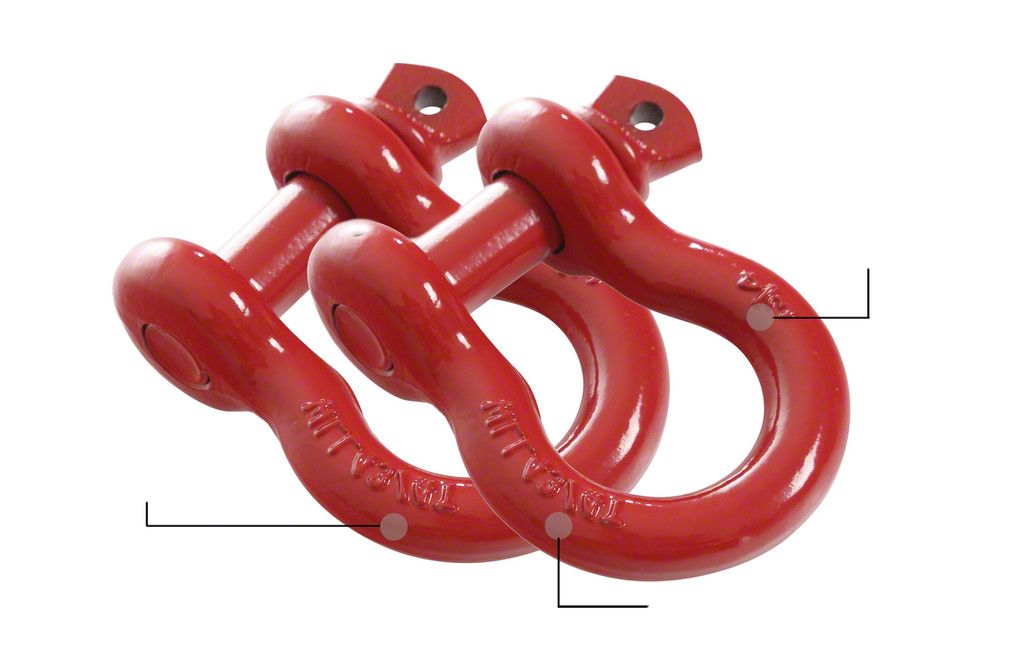 Application. These red 3/4-Inch 4.75-Ton Recovery Shackles are made with universal fitment.