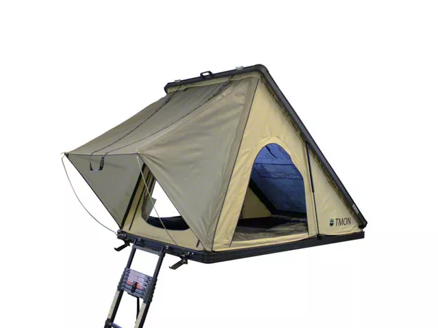 Durable and Comfortable Roof Top Tent. The Overland Vehicle Systems LD TMON Roof Top Tent provides a reliable and comfortable shelter for your overland adventures. Featuring a cream beige finish and a hard clamshell design, this tent is both stylish and functional, making it a great addition to your vehicle.