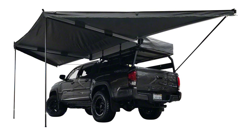 88 Square Feet of Space. Enjoy an additional 88 square feet of space on the off-road with the premium grade Overland Vehicle Systems Nomadic Awning 180. This awning uses well supported oversized hinges and heavy-duty rafters to keep upright, supported by super durable 280G poly cotton ripstop material for outstanding weather resistance.