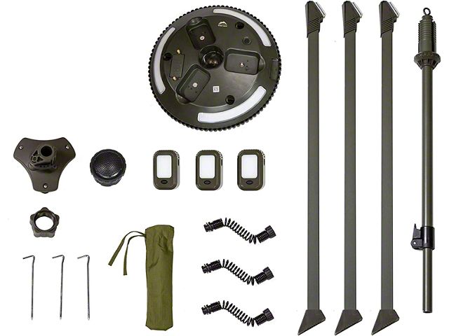 First-Rate Functional Design. Enhance your outdoor adventures with the Overland Vehicle Systems UFO Solar Light Light Pods and Speaker. This innovative system is designed with a telescoping design, providing an impressive 70 to 90 inches of adjustability, allowing you to easily position the lights and speaker at the perfect height. The built-in 3.75-inch Bluetooth speaker allows you to enjoy your favorite tunes while immersing yourself in nature. The kit includes a 17.5-inch UFO-shaped main head unit, which serves as the central hub for the system. Additionally, three removable light pods are included, each offering different light settings to suit your needs.