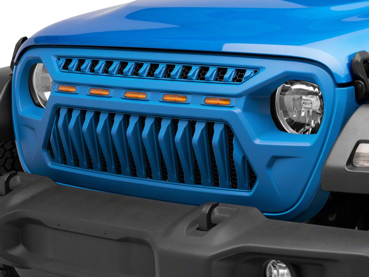 Application. This Mohave Grille with Marker Lights; Unpainted is designed to fit 2020-2026 Jeep Gladiator JT models.