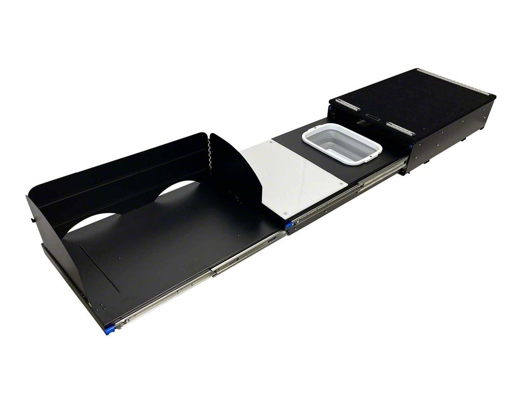Application. This Overland Vehicle Systems Camp Cargo Box Kitchen With Slide Out Sink, Cooking Shelf, and Work Station is made for universal application. Some adaptation may be needed depending on your vehicle’s specifications.