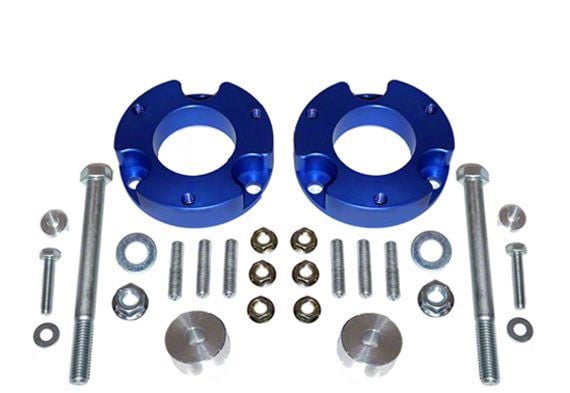 Beefy Strut Spacers. This front leveling kit delivers its 2.50 inches of front lift via a pair of strut spacers CNC-machined from high-grade aluminum alloy. This combination of quality materials and high-tech manufacturing produces a pair of really beefy spacers that will fit your 4Runner like a glove. What’s more, these spacers are anodized in blue for outstanding corrosion protection and an impressive style.