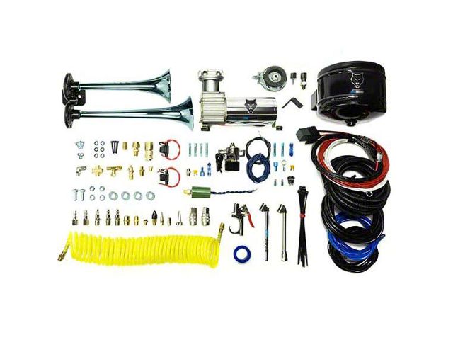 Reliable and Efficient. Everything you need to upgrade or restore your horn system is included in this Air Horn Kit. The components are pre-matched and then put through rigorous quality checks to guarantee compatibility and dependability. In addition, this kit includes a polished chrome cast aluminum horn.