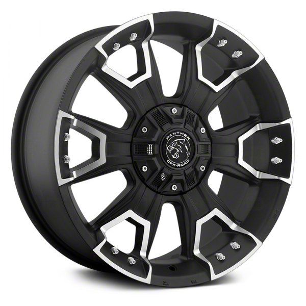 Panther Off Road 904 Flat Black Machined 6-Lug Wheel; 18x9; 0mm Offset. The Panther Off Road 904 Flat Black Machined 6-Lug Wheel offers a striking balance of style and refinement. Its unique design accentuates the vehicle's aesthetic, while the premium construction underscores its robust nature. This wheel is a perfect choice for those seeking both elegance and a strong visual statement.