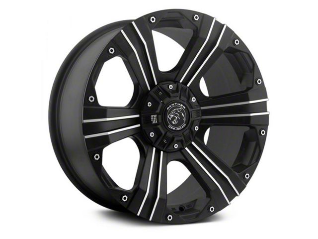 Panther Off Road 902 Flat Black Machined 6-Lug Wheel; 20x9; -12mm Offset exudes sophistication with its finish, offering a sleek and modern appeal to any vehicle it adorns. The design is meticulously crafted to enhance the aesthetic of your vehicle, giving it a distinctive and upscale look. Perfect for those seeking to elevate their vehicle's style, this wheel blends seamlessly with both contemporary and classic vehicle designs, making it a versatile choice for a wide range of vehicles. Its robust construction ensures durability, making it a reliable choice for drivers who value both style and quality.