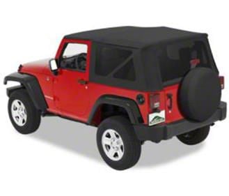 Pavement Ends' Replay soft top in Black Diamond with tinted side and rear windows is a great option for a simple replacement top on your first generation Wrangler JK 2 Door. The Replay Top will give your Wrangler a new and upgraded look while using your original factory hardware for an easy installation. With the help of just a couple of simple tools, the replacement Replay soft top can easily be installed with a couple of screws, straps and zippers. Fitting tightly in place, the Replay top can supply full coverage for your Wrangler. Made from durable automotive grade fabric, DOT approved vinyl windows and sealed seams for climate protection, strength-tested industrial thread and zippers to provide years of durability.