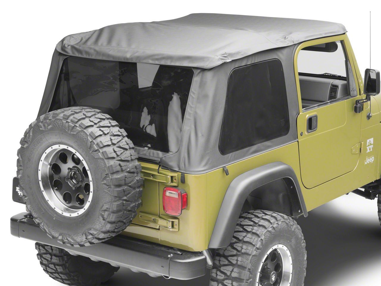 The Spring Top in Black Diamond by Pavement Ends is a frameless top that can easily be converted into a Bikini top. For the open Bikini look, the tinted side and rear windows can simply be removed. Manufactured to be a perfect fit for you Wrangler TJ, the Sprint top fits smoothly on your vehicle by using your existing factory door surrounds, windshield header and tailgate bar along with the use of your full steel doors or Bestop replacement doors. For an open top feeling, the Sprint Top also has a flip-back sunroof panel that will allow you and your passenger to enjoy the breeze while cruising!