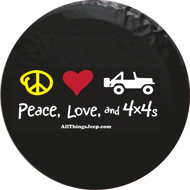 Application. This Peace, Love, and 4x4s Spare Tire cover fits all 1966-2018 Jeep CJ5, CJ7, Wrangler YJ, TJ, and JK models.