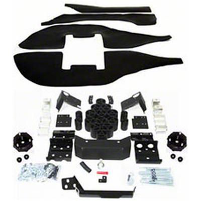 Durable Construction and Features. This lift kit includes urethane gap guards to protect against debris and dirt, maintaining a clean and integrated look. The kit's components are CNC-machined and laser-cut, ensuring precise fit and durability, and feature zinc-plated and powder-coated finishes for extra corrosion resistance. The lift blocks are made from high-pressure fiberglass-reinforced nylon, providing robust support and longevity.