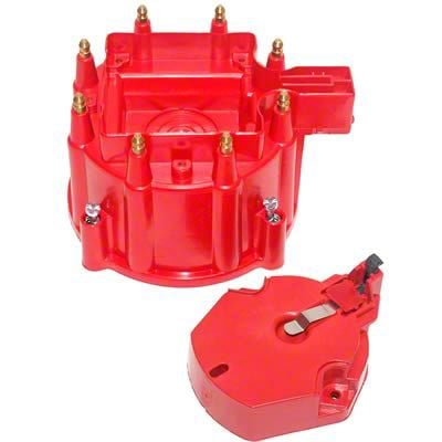Construction and Appearance. The cap and rotor are constructed with high-quality materials, including brass terminals that enhance conductivity and resist corrosion. The racing red finish adds a bold and distinctive look under the hood. This set is OE compatible and comparable, ensuring it meets or exceeds the original equipment standards.