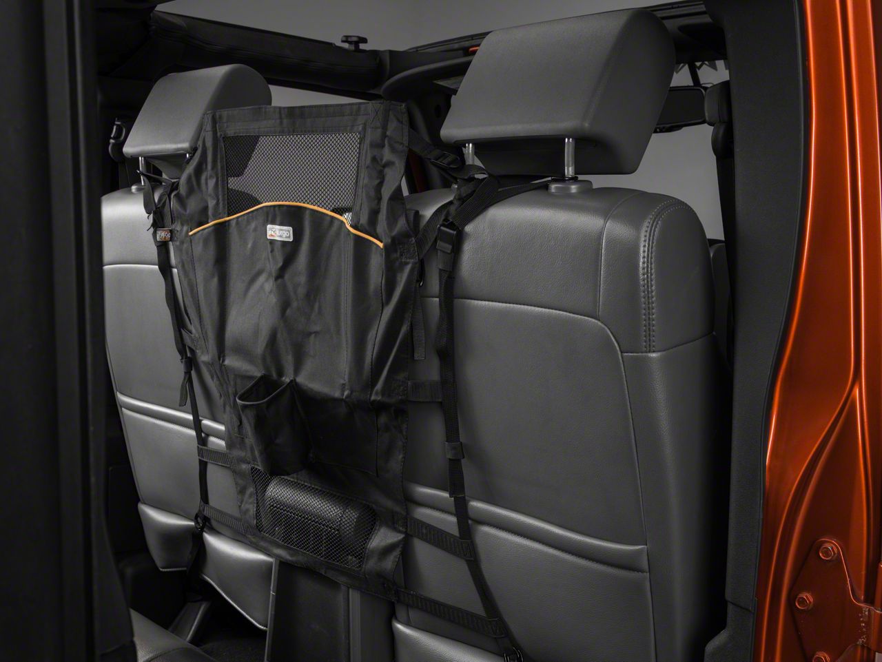 Functional Barrier. Designed to keep man's best friend from jumping into the front seat, this barrier features a unique construction with mesh panels to provide full visibility and air flow. This barrier installs and removes simply with use of straps and has an incorporated drink holder in the event your dog is swapped for human passengers.