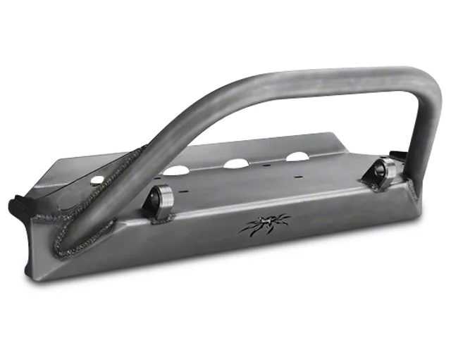 Tough Exterior. Enhance your Jeep Wrangler to stand up to tough conditions with this Poison Spyder front bumper. It features a stubby design and an unfinished metal look that lets you customize it further during use. This bumper is made from plate steel and built to withstand heavy use well.
