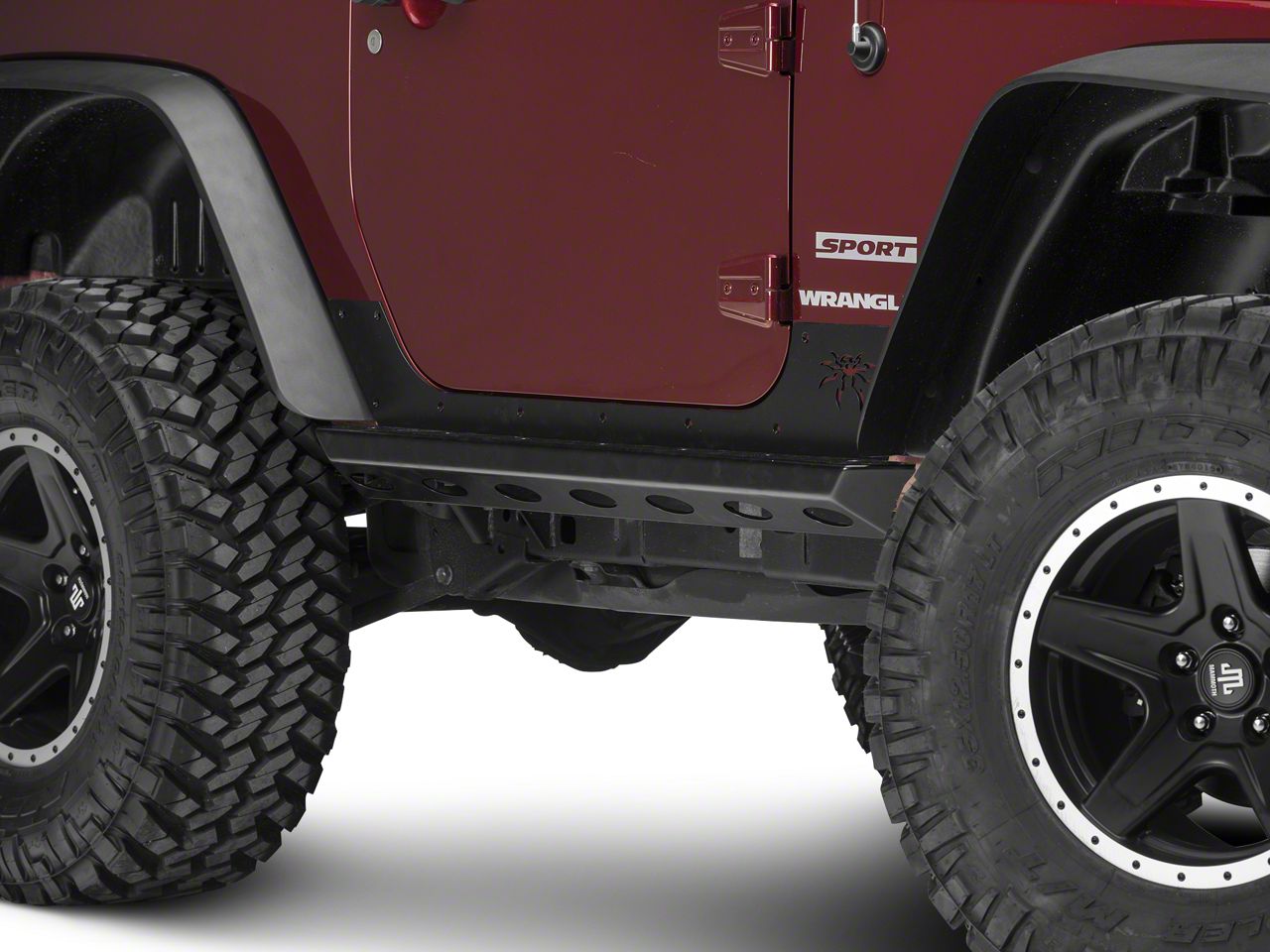 Application. This pair of Poison Spyder Brawler Rockers in Black SpyderShell Armor Coat is engineered to fit 2007-2018 Jeep Wrangler JK models.