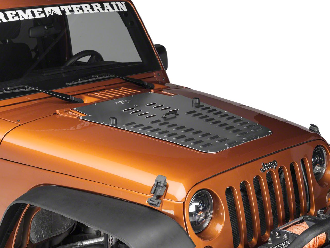 Aggressive Design. The Hood Louver from Poison Spyder not only makes your engine compartment cooler. It also makes your Jeep look cooler. It comes as a bare steel louver to allow you to coat it with the type of finish that matches your Jeep or that suits your taste.