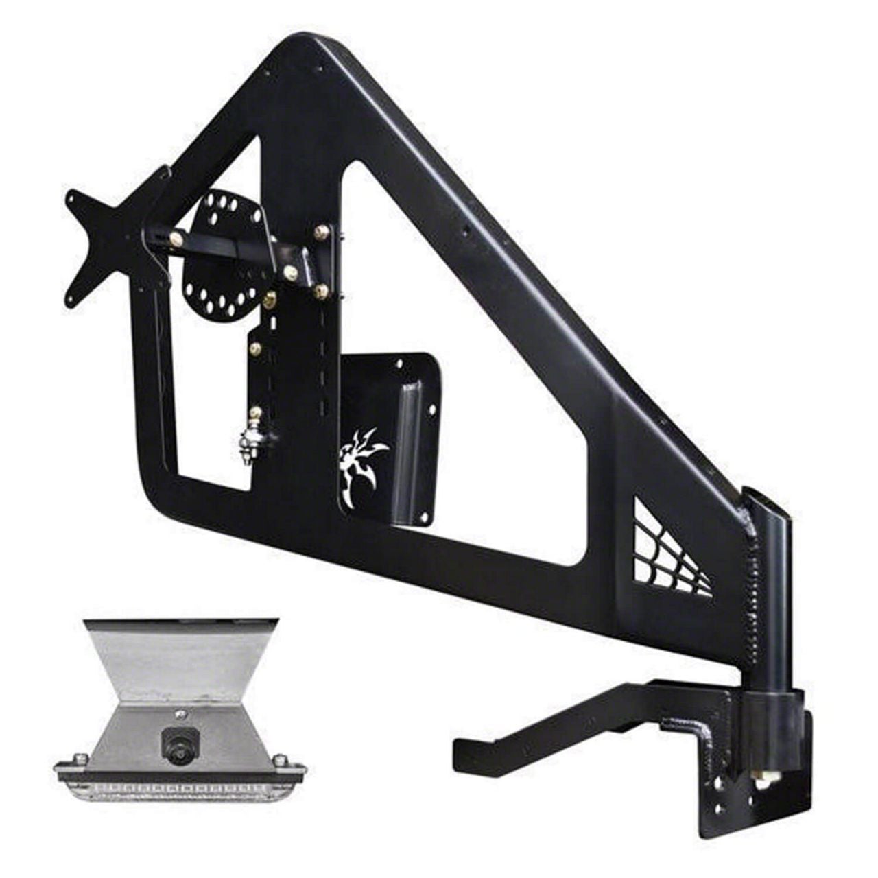 Conveniently Carry a Spare Tire Anywhere. Your Jeep Wrangler’s tires carry the heaviest load and beating every time you go off-roading. If you’re not prepared, you might find yourself stuck in the middle of nowhere after getting your tires busted. With the Poison Spyder Frame Mounted Tire Carrier with Spyder Shell Armor Coat, you can conveniently carry a spare tire and drive confidently knowing that you’re always ready for any unfortunate incidents. Premium-class built, our Frame Mounted Tire Carrier has been fabricated using a durable, CNC-cut, and brake-formed plate steel. All pieces are welded together to ensure unparalleled strength without sacrificing the fit and design. Each tire carrier comes with Poison Spyder’s original Spyder Shell™ Armor Coat to give it a lasting protection against corrosion and harsh weather conditions. A versatile design guarantees a stable mounting with the tire carrier mounted directly onto the frame. This is done to spread the weight evenly, thus minimizing the stress on your Jeep Wrangler’s body or bumper. This tire carrier also features a single-action opening wherein the tire carrier is tethered to the tailgate so you can access the tire carrier and tailgate at the same time and without interfering with each other. Topping it off, the tire carrier assembly is adjustable up and down and in and out, thus allowing you to carry bigger tires up to 40 inches and offers multiple bolt patterns, 5x5, 5x4.5, 5x5.5, 6x5.5, and 8x6.5. So whether you are running factory axles or upgrade to competition grade and everything in between, this tire carrier has you covered. Our Frame-Mounted Tire Carrier can be installed with or without a bumper. Our Frame Mounted Tire Carrier works with both our Bruiser & Crawler series rear bumpers and comes equipped with a license plate relocation bracket that also houses the factory Wrangler JL rear facing camera and third tail light.