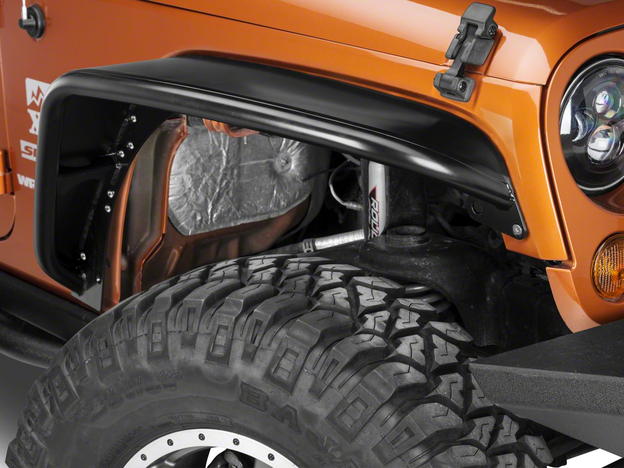 High-Grade Finish. The Poison Spyder Standard Width Crusher Fender Flares are created to give your Jeep a stylish appearance while also providing protection when you are on the road or off of it. Using heavy-duty steel, these flares can withstand the demands of your vehicle without showing signs of wear.