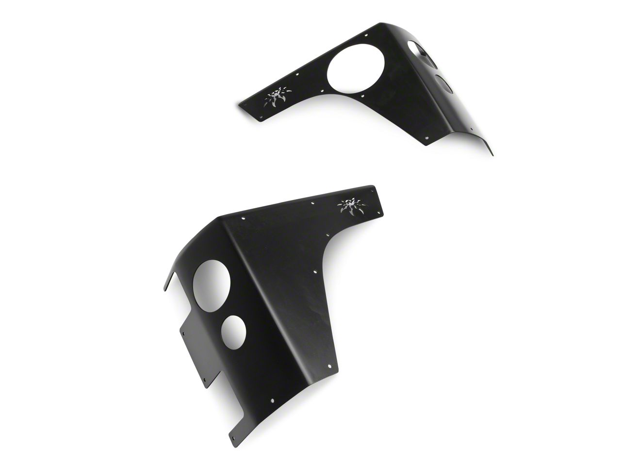 Heavy-Duty Trail Protection. Trail adventures could expose your off-roader to damages caused by rocks and other large obstacles. Give your vehicle some extra protection with the Poison Spyder Trail Corner with Round Tail Light and Backup Light Cutouts. These trail guards fit right onto your Jeep to provide solid protection to the rear tailgate around the side to the top of the wheel opening. With their heavy-duty steel construction and durable Spydershell coating, they give superior protection while also giving an aggressive upgrade to your vehicle’s look.