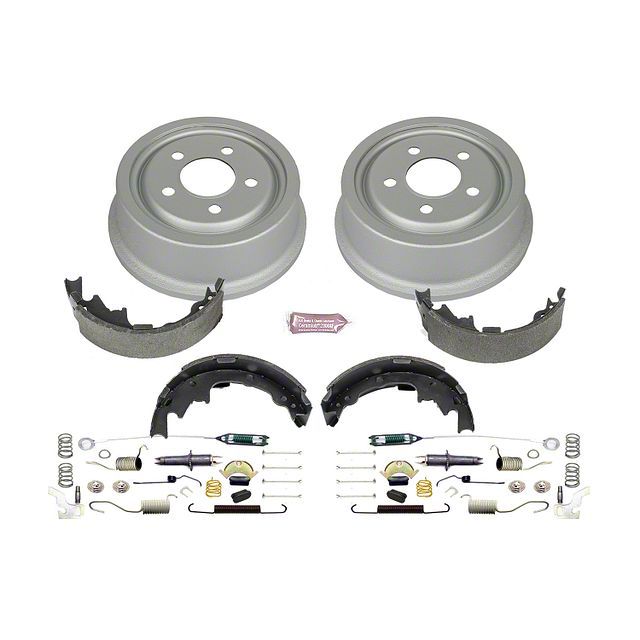 Rear Braking Kit. This Jeep Wrangler rear brake kit has two drums, four brake shoes, springs, and drum hardware.
