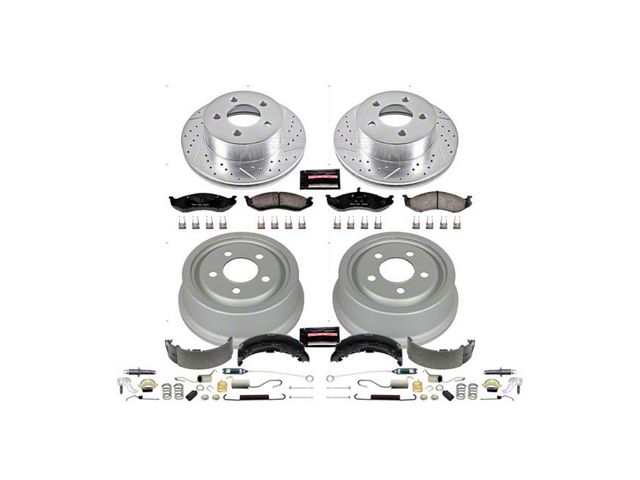 Upgraded Braking Performance. Raise the braking capabilities of your vehicle to the next level using this Jeep Wrangler Z23 braking kit. The set has brake drums, brake rotors, drum shoes, disc brake pads, drum hardware, drum springs, caliper boots, and retaining clips for a complete overhaul. The set is meant to fit select 1999 and 2000 Jeep Wrangler TJ models.