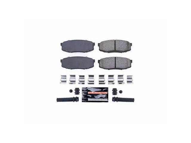 Carbon-Fiber Ceramic. This rear pair of PowerStop Z23 Evolution Sport Brake Pads is made of carbon-fiber ceramic material. This allows the brake pads to resist fade and daily wear and tear better than your OEM pads. Furthermore, these brake pads are completed with a powder-coated backing plate to prevent rust and corrosion.