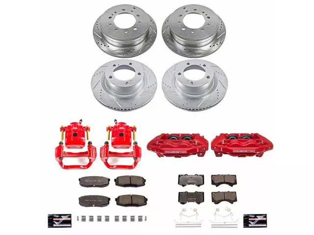 Full Front Brake Kit. Enhance the braking capacity of your Toyota Tacoma by investing in this full-front brake kit and get new rotors, calipers, and more capable brake pads at the same time. This kit is designed to fit like the OEM brake components but to offer improved durability and performance. This brake kit fits 2005-2021 Toyota Tacoma trucks without adjustments. The kit includes all the necessary hardware for the installation.