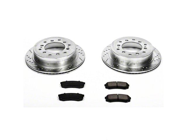 Excellent Braking Power. Wherever and Whenever. You never know when you'll need to stop on a dime, so it's important to always have the best braking system installed on your vehicle. The PowerStop Z23 Evolution 6-Lug Brake Rotor and Pad Kit (Rear) is perfect for ensuring that you're always stopping on the safest possible surface. This kit includes drilled and slotted 6-lug brake rotors for rear placement, as well as brake pads that will give you the stopping power you need in any situation.