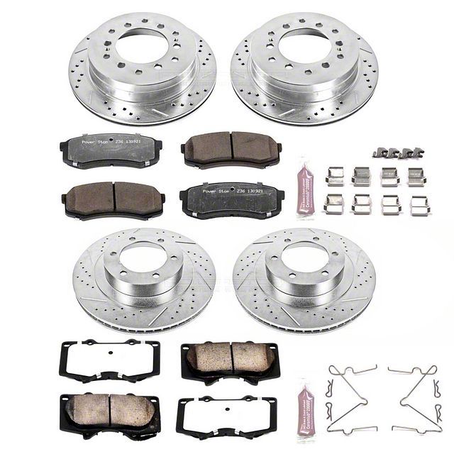 Superior Stopping. Get quicker stops and more reliable braking with this PowerStop Z36 Extreme Truck and Tow 6-Lug Brake Rotor and Pad Kit; Front and Rear on your 4-Runner. Made for heavy-duty stops, it features drilled and slotted surface for greater traction on wet weather, while its carbon-ceramic pads ensure optimal stopping power.