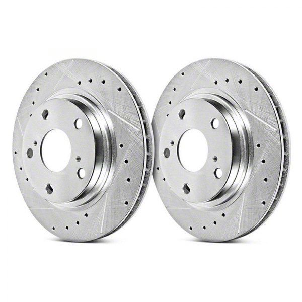 Reliable Braking Power. Take your F-150's braking system to the next level with PowerStop Evolution Cross-Drilled and Slotted 6-Lug Rotors; Front Pair. Featuring a cross-drilled design that enhances cooling and a slotted surface that effectively removes gas and debris, these rotors significantly improve your vehicle's braking power.