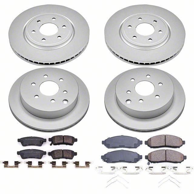 Description. PowerStop is on a mission to deliver an easy and affordable way for any driver to upgrade their brakes - no matter where or how they use their vehicle. Our Z17 Evolution GEOMET Fully Coated Rotor Brake Kit includes brake pads, rotors, and stainless-steel hardware; everything you need for the affordable, easy replacement brake kit for your daily-driven vehicle. The Z17 Evolution pads feature a low-dust formula, validated through on-vehicle 3rd party tests in the USA, to keep your wheels looking like new. These pads also have multi-layer rubberized shims that insulate noise for virtually silent braking. The rotors are treated with a thin layer of Genuine GEOMET 360 coating to protect against rust and corrosion without diminishing braking performance, and are manufactured to original equipment specifications. If you’re looking to refresh the look and braking performance of your old, worn-out brakes, look no further. Say hello to a smooth, quiet commute with the Z17 Evolution GEOMET Coated Rotor Brake Kit.