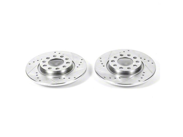 Description. PowerStop drilled and slotted rotors provide a bolt-on upgrade for improved brake cooling and performance. Precision cross-drilled for maximum cooling and maximum performance during extreme conditions. The rounded slots sweep away gas, debris, and moisture to keep a clean friction contact patch on the rotor surface providing smooth, safe braking. Silver zinc dichromate plating resists rust and corrosion. With a direct OE fit, there are no special modifications needed. Upgrading the looks and stopping power of your vehicle has never been easier.