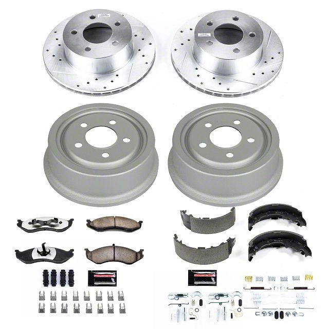 Full Drum and Rotor Kit. This complete braking kit includes two rotors, two brake drums, a drum hardware kit, four brake shoes, and four brake pads.