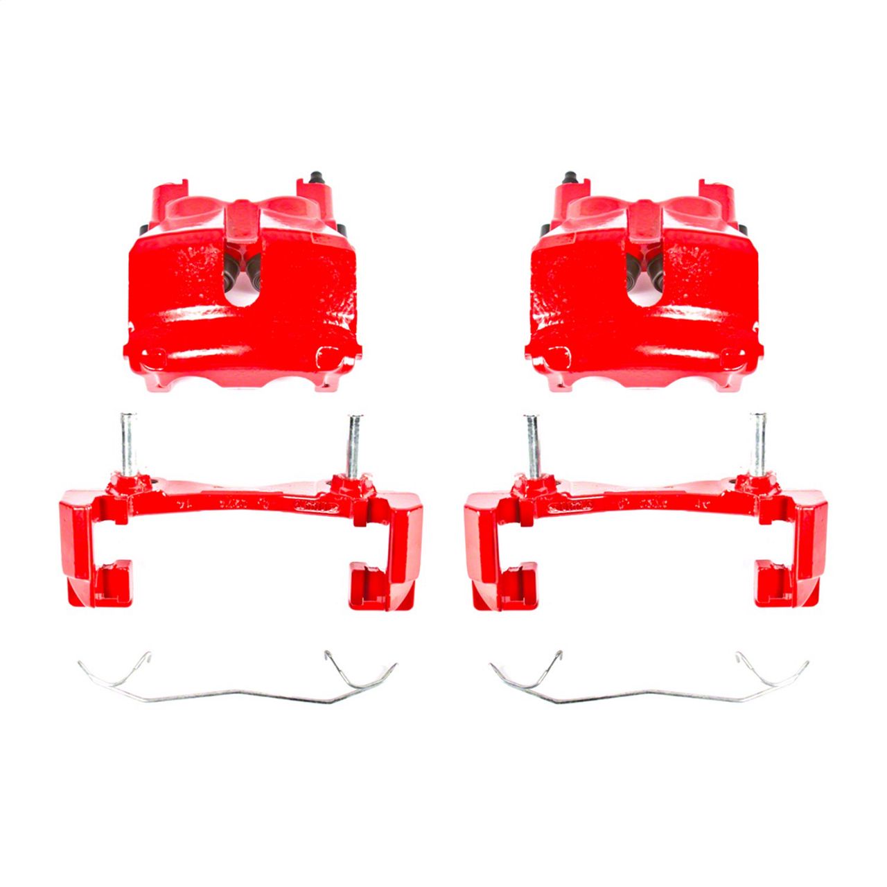 Construction and Appearance. Remanufactured in Chicago, Illinois, these calipers feature a striking glossy red finish that adds a sporty look to your brake system while resisting rust and corrosion. Each caliper is fully pressure tested and comes complete with new seals, EPDM rubber dust boots, caliper guide pins, bleeder screws, stainless steel brake pad abutment clips, silicone lubricant, and mounting brackets—ensuring lasting quality and performance.