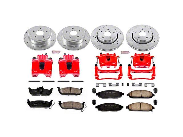 Description. PowerStop is on a mission to deliver an easy and affordable way for any driver to upgrade their brakes - no matter where or how they use their vehicle. Forget standard, off-the-shelf parts. Our Z23 Evolution Sport Brake Upgrade Kit with Powder Coated Calipers comes with everything you need, from pads, rotors, calipers and premium stainless-steel hardware for an easy, bolt-on upgrade for your daily-driver. Along with increased braking power, the carbon-fiber ceramic brake pads feature a low-dust formula to keep those wheels looking great while you say goodbye to nasty brake dust. These pads combine with Drilled & Slotted rotors to ensure a cool, smooth ride that protects against rust and corrosion. The Powder Coated Calipers not only protect against corrosion, but also really stand out behind your wheels! Give your daily-driver the easy and affordable performance upgrade it deserves with the Z23 Evolution Sport Brake Upgrade Kit with Calipers.