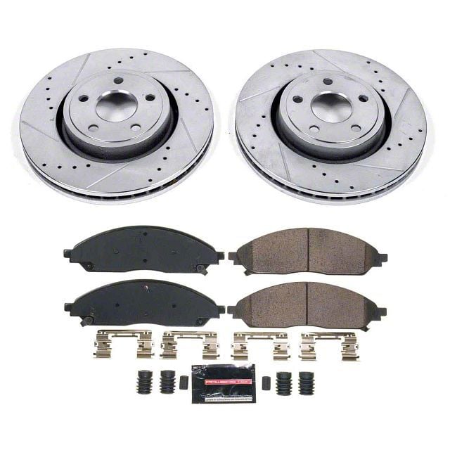 Z23 Evolution Sport Brake Upgrade KitPowerStop is on a mission to deliver an easy and affordable way for any driver to upgrade their brakes - no matter where or how they use their vehicle. Forget standard, off-the-shelf parts. Our Z23 Evolution Sport Brake Upgrade Kit comes with everything you need, from pads, rotors and premium stainless-steel hardware for an easy, bolt-on upgrade for your daily-driver. Along with increased braking power, the Carbon-Fiber Ceramic brake pads feature a low-dust formula to keep those wheels looking great while you say goodbye to nasty brake dust. These pads combine with Drilled & Slotted rotors to ensure a cool, smooth ride that protects against rust and corrosion. Give your daily-driver the easy and affordable performance upgrade it deserves with the Z23 Evolution Sport Brake Upgrade Kit.Everything You Need Is In The BoxZ23 Carbon-Fiber Ceramic Brake PadsUpgraded braking performance designed for every-day cars, trucks and SUVsDual-Layer Rubberized ShimsBetter noise insulator for virtually silent brakingDrilled, Slotted & Zinc Plated RotorsProvide maximum cooling and helps protect against rust and corrosionPremium Stainless-Steel HardwareHi-Temp Brake Lubricant