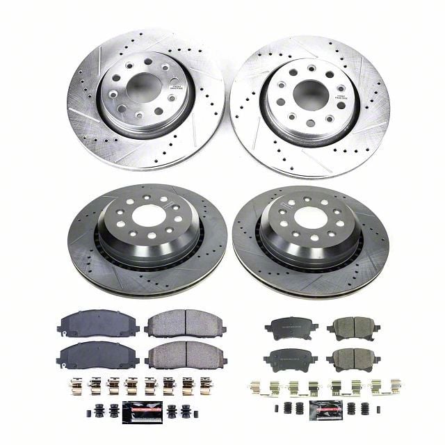 Champion of Stopping Power. Gain a leg up over the competition with improved braking distances using the premium grade PowerStop Z23 Evolution Sport Brake Rotor & Pad Kit - Front and Rear. This brake rotor and pad kit performs with its premium grade cast iron construction, heat tolerance, and exceptional pedal feel.