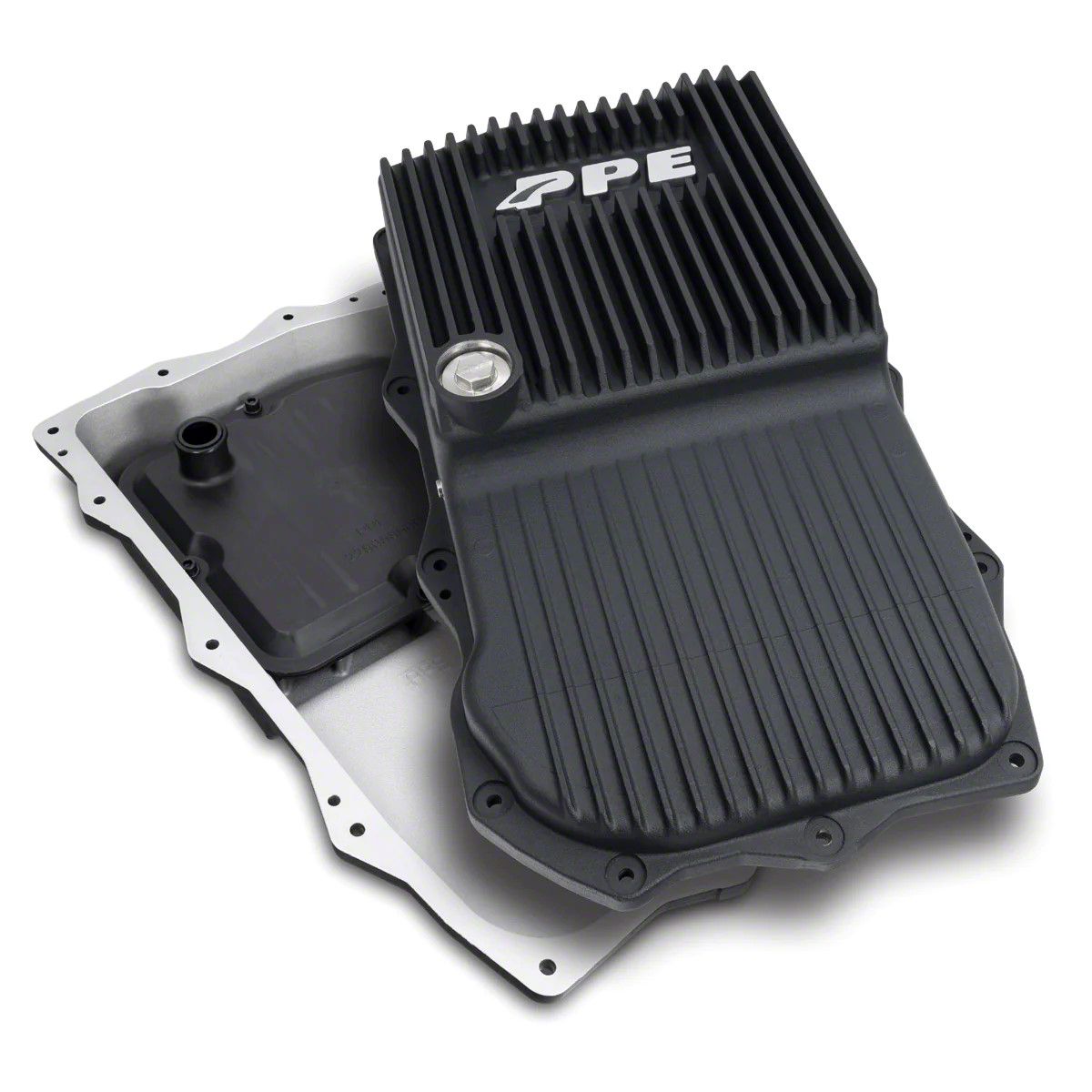 Installation. Putting this PPE Heavy-Duty Cast Aluminum Deep Transmission Pan on your ride is moderately hard and requires modification of the exhaust crossover pipe.