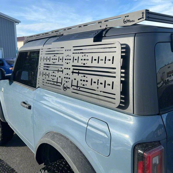 Application. This Prinsu Accessory Panel fits 2021–2026 Ford Bronco 2-Door models when used with the Prinsu Pro Roof Rack. It enhances your rack's utility with a dedicated mounting surface for gear and equipment, making it the ideal solution for overlanders, campers, and weekend warriors alike.