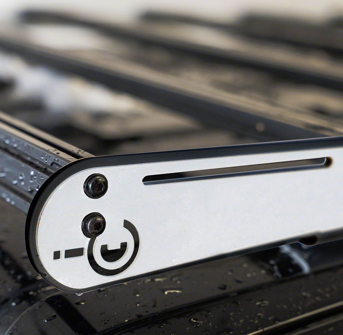 Construction and Appearance. Made of high-quality aluminum, the Prinsu Roof Rack Shield Plate Full Kit features a bare aluminum finish. This ensures durability and a sleek, modern look. The crossbars come with built-in drop points, adding to the functionality and ease of use.