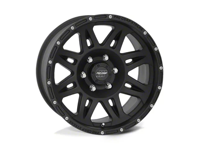 Pro Comp Wheels Torq Flat Black 6-Lug Wheel; 17x9; -6mm Offset is a perfect blend of style and rugged design, making it a standout choice for those looking to enhance their vehicle's aesthetic appeal. Its bold, dark metallic finish pairs seamlessly with a wide variety of vehicle styles, offering both modernity and durability. Built by Pro Comp Wheels, this wheel is designed to elevate your vehicle's appearance with its robust presence.