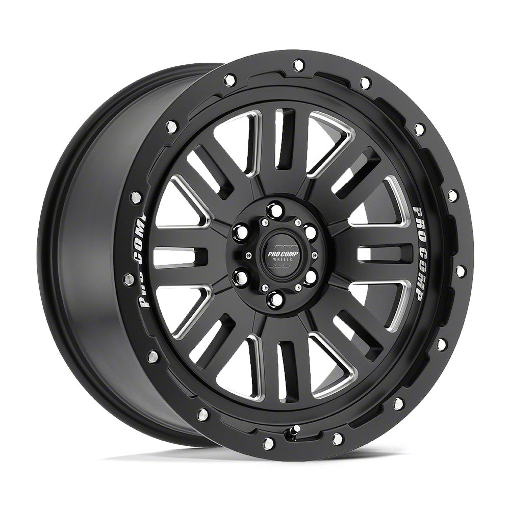 The 17x9 Pro Comp Wheels Cognos Satin Black Milled Wheel is completed in a high-quality satin black finish with steel milled accents that will be the envy of everyone. For added protection and good looks, there is a durable clear coat that withstands the rigors of everyday driving,