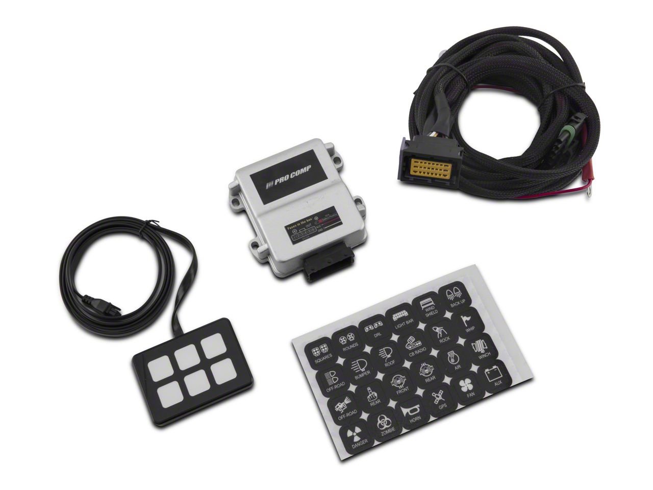 Easy Controls for Everything Electronic. If you want a convenient, tech-savvy way to manage your Jeep’s electronically controlled accessories, this Pro Comp SS-6 Six-Way Touchscreen Sports Switch is the perfect solution. You can control a maximum of (6) 12-volt accessories, which you can tag individually using the laser-engraved sticker labels. The light indicators also help you keep track which of the accessories you’ve connected are currently active.