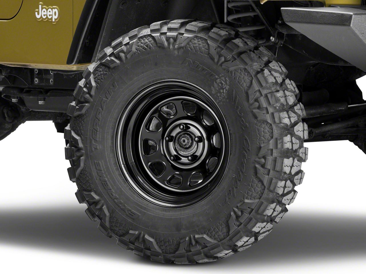 Application. This Pro Comp Wheels Steel Series 51 District Gloss Black Wheel; 15x8 with a backspace of 4.5 Inch, 114.3mm and bolt pattern of 5 x 114.3mm (5 x 4.5-Inch) ensures impeccable alignment and unmatched driving stability. Specifically designed for 97-06 Jeep Wrangler TJ models, each wheel is sold individually.