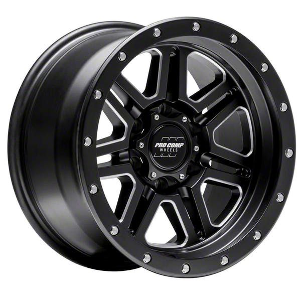 The 17x9 Pro Comp Wheels 62 Series Apex Satin Black Milled 6-Lug Wheel is given a satin black finish to keep your wheel looking sharp. The milled steel accents are where it literally shines through, making the split section of the spokes stand out along the faux beadlock.