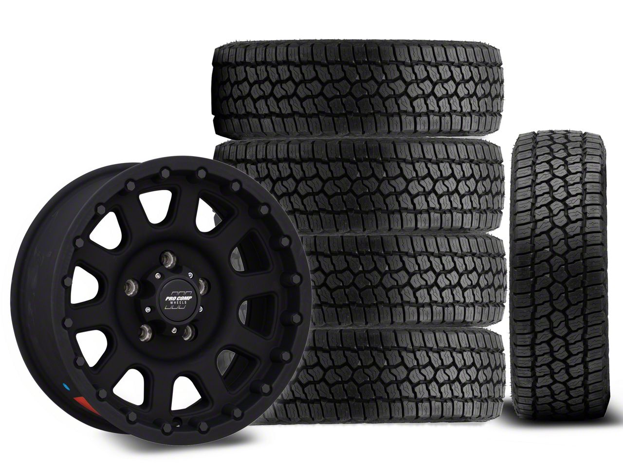 Mounted and Balanced Wheel and Tire Kit. This wheel and tire combo kit features (5) 16x8 Pro Comp 32 Series Bandido Flat Black Wheels and (5) Milestar Patagonia AT/R All-Terrain 285/75R16 tires that have been put together into an easy to buy kit that arrives to your door already mounted and balanced ready to be installed on your vehicle.